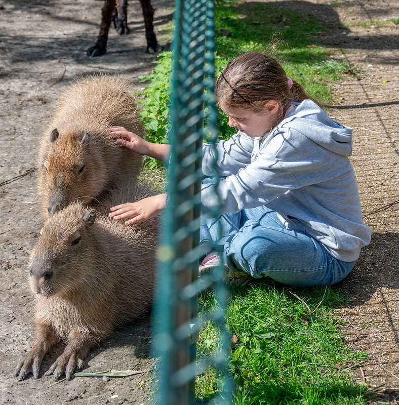 Moos is helemaal in de ban van de Capibara's. Dus tijdens een logeerpartij zijn we getogen naar Faunapark Flakkee. Kortom. Dat werd een groot succes, vooral omdat ze alldrie niet waren weg te slaan bij Moos. Alsof ze zelf een capibara is 😉. Hoewel het park wat gedateerd is, was het als geheel de moeite van het te bezoeken waard.